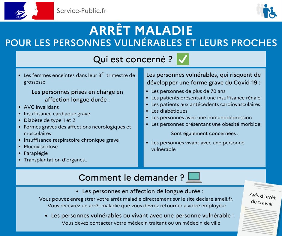 Service Public Fr On Twitter Covid19 Les Personnes Vulnerables Peuvent Beneficier D Un Arret Maladie Afin De Limiter Les Contacts Et Leurs Deplacements Les Personnes Vivant Avec Elles Sont Aussi Concernees Cette Mesure